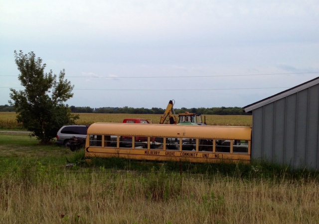 In this case someone needed more storage than the shed could hold. Creative solution? Cut an opening in the wall and add the back of a buss.